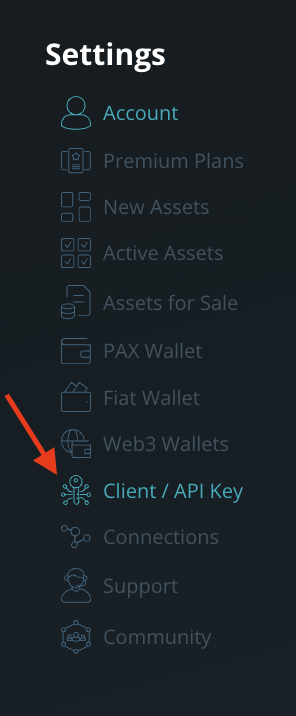O) Click on “Client / API Key” on the menu