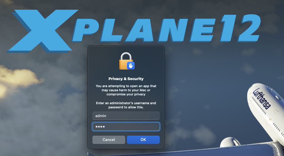 I) Close your system preference app and start XPlane again. The message that appear should be different, click on “Open Anyway”