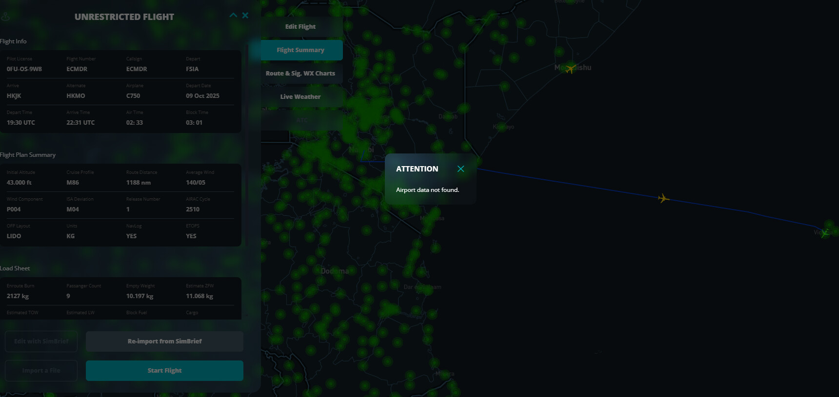 I’ve double-checked your flight plan, and the issue actually wasn’t at HKJK but at the departure airport, FSIA. We’ve verified and fixed the range there, so that error occurred during takeoff, not landing ![]()