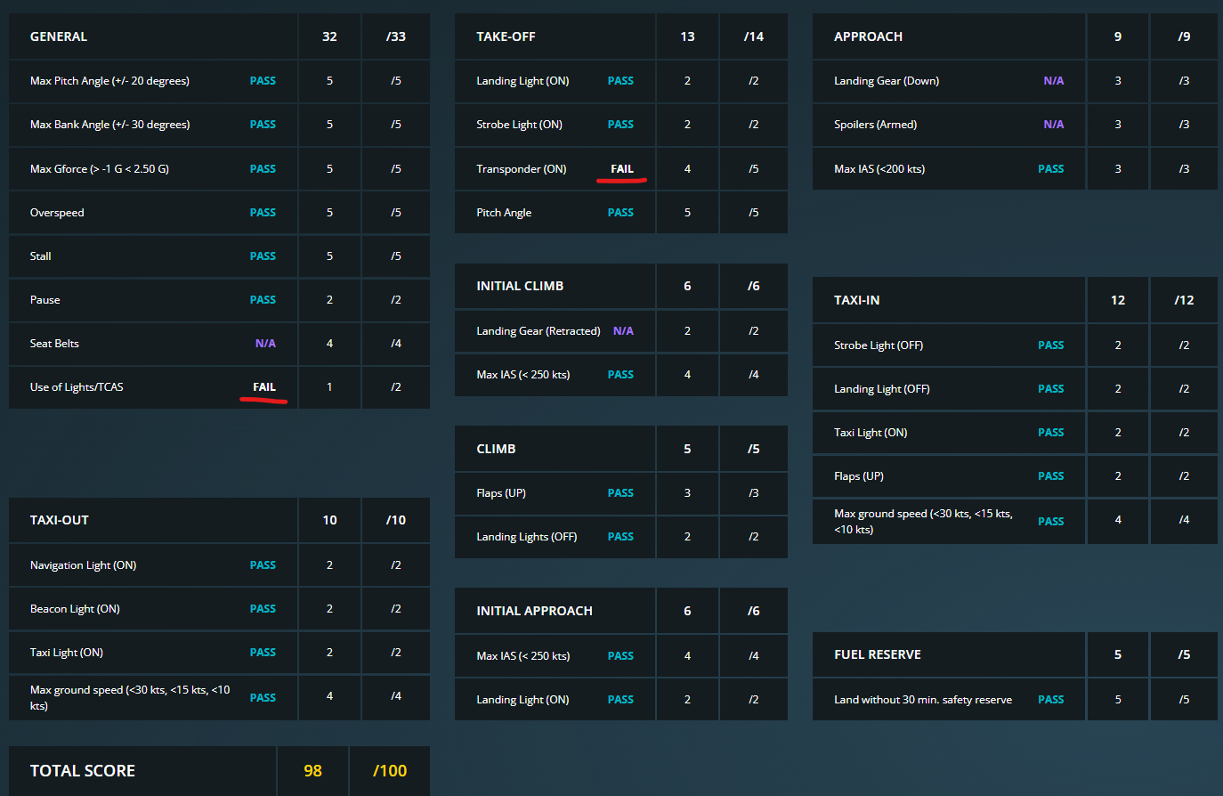well if you confirm the same settings I have, it means that on some aircraft, the MODE C, or ALT is turned ON after take off, that’s why there’s a penalty given, because the actual Simfly rule wants it ON from the parking area also while taxing. But in some airplane, the transponder is set automatically on “GROUND”, and after take off switches to “ALT”. So for now, simfly needs to find a new way or a new rule about transponder MODE C setting. Will keep you updated.